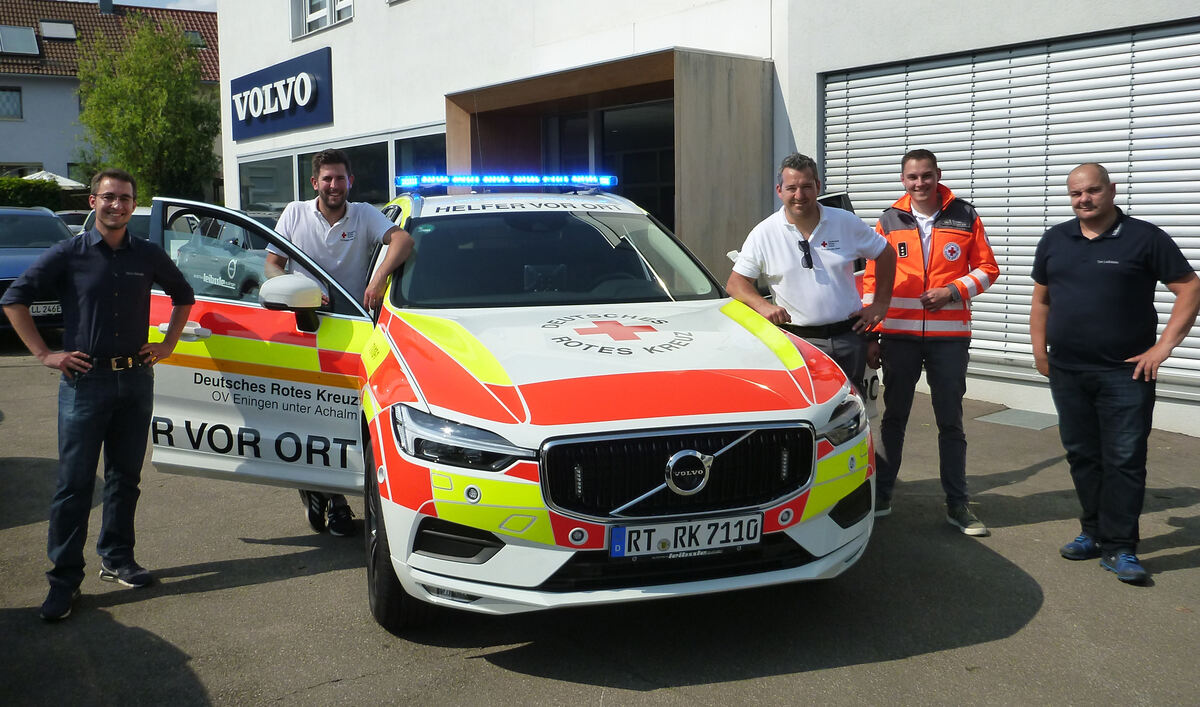 Der Volvo XC60 B5 AWD hat ein Sportfahrwerk und eine Allrad-Automatik, damit die Einsatzkräfte im Notfall sowohl sicher als auch schnell am Einsatzort sind. Zudem wird das Sonderfahrzeug angetrieben von einem nachhaltigen Mild-Hybridantrieb. Von außen ist das Auto sofort als Einsatzfahrzeug zu erkennen. Bei den Kosten für die Folierung wurde das DRK Eningen vom Autohersteller unterstützt. (eg)