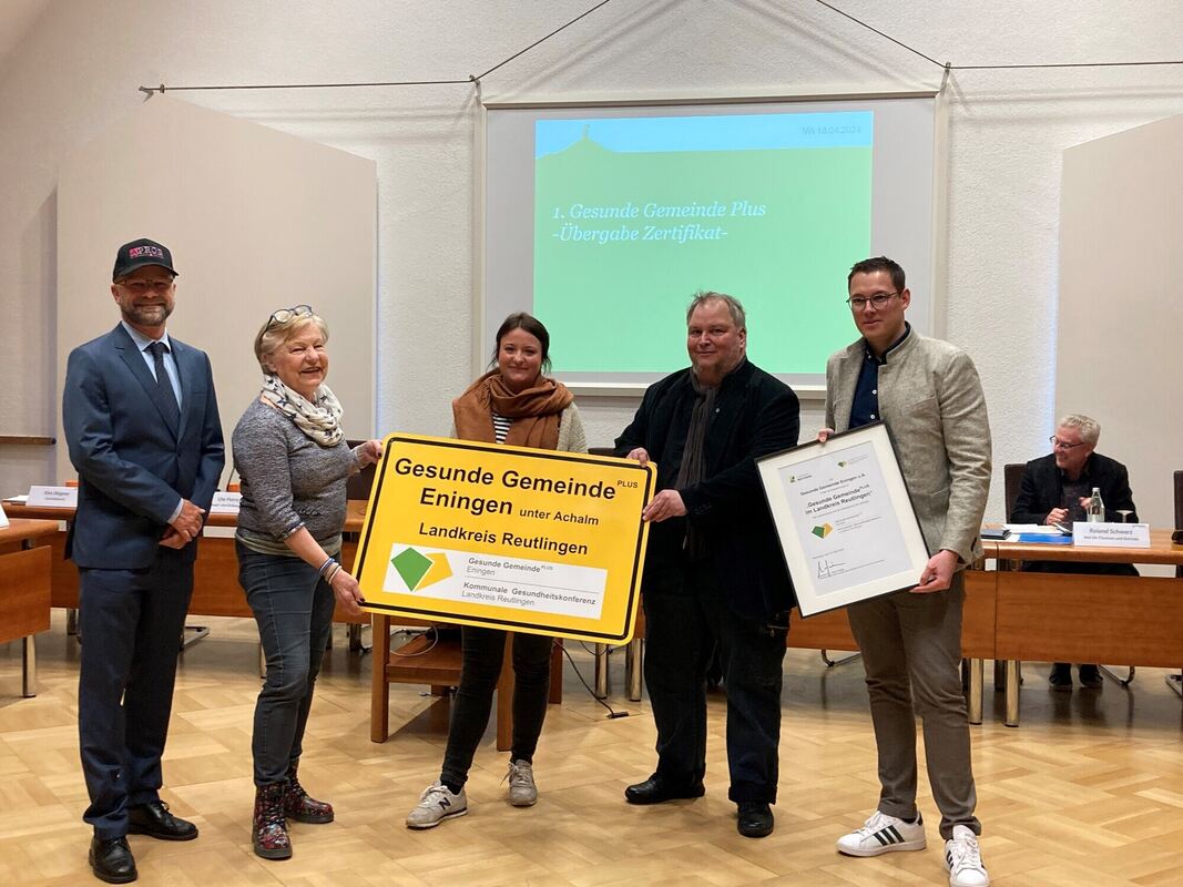 ENINGEN. »Gesunde Gemeinde - Gesunde Stadt« lautet das Motto der Gesundheitsförderung im Landkreis Reutlingen. Ziel ist es, die Lebensqualität im Kreis zu erhalten und zu fördern. Eningen ist eine von drei Modellgemeinden, die von Anfang an Teil dieses Projekts sind. Für ihre außerordentlichen Maßnahmen wurde sie schon 2015 zum ersten Mal ausgezeichnet. Weil die Achalmgemeinde mittlerweile drei dieser Zertifikate besitzt, darf sie sich ab sofort »Gesunde Gemeinde Plus« nennen.
