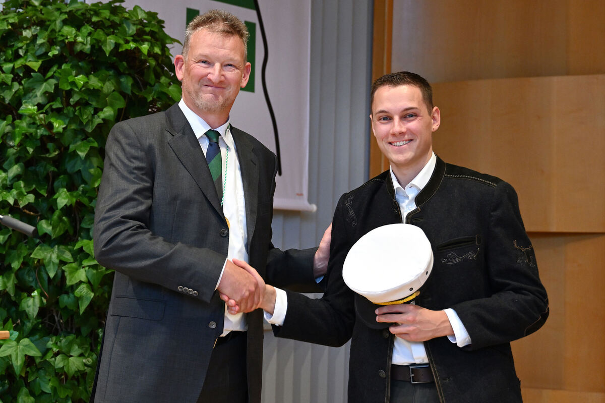 Bürgermeister Alexander Schweizer reicht die Kapitänsmütze, die er einst bei seinem Amtsantritt bekam, zum Abschied an seinen Nachfolger Eric Sindek weiter.