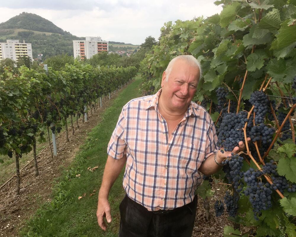 Emil Reicherter freut sich auf die Ernte in seinem Weinberg »Ob Hofen«. FOTO: SAUTTER