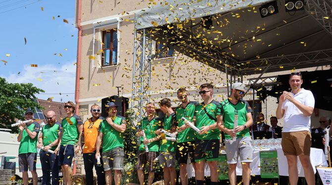 Großer Empfang für die frischgekürten Handballmeister des TSV Eningen.