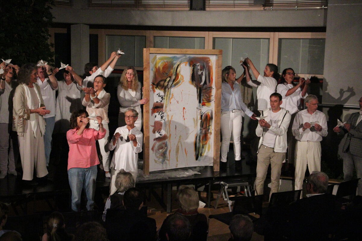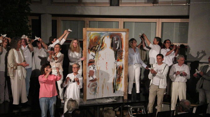 Die Gäste stehen im Mittelpunkt: Mit Theaterszenen und Musik feierten die Mitarbeiterinnen und Mitarbeiter das 20-jährige Bestehen des Hospizes Veronika Eningen. FOTOS: DEWALD