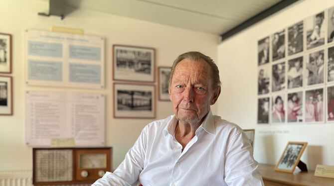 Albrecht Wandel, langjähriger Geschäftsführer von Wandel & Goltermann, im Firmenmuseum in Pfullingen. Es ist ihm ein Anliegen, die Firmengeschichte lebendig zu halten. FOTO: WEBER