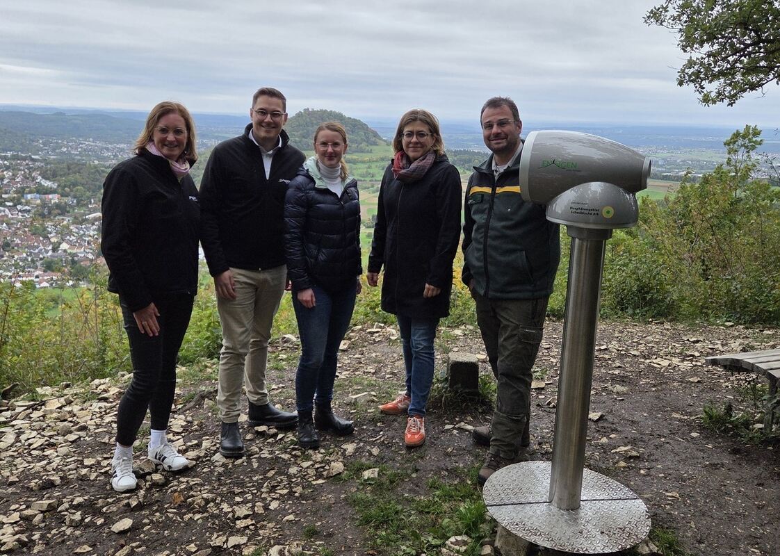 »Mit dem neuen Fernrohr können Einheimische und Gäste die einzigartige Topografie unserer Region noch bewusster erleben«, sagt Bürgermeister Eric Sindek. »Gerade hier oben am Gutenberg wird deutlich, was für ein Schatz das Biosphärengebiet Schwäbische Alb ist – ein fantastischer Weitblick, ein Panorama, das bei jeder Jahreszeit begeistert.« Der Standort wurde bewusst gewählt: Der Premiumwanderweg »hochgehteufelt« führt direkt an der Aussichtsstelle vorbei.