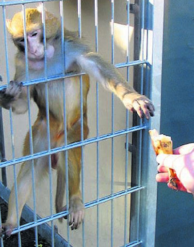 Beißen schon mal in die Hand, die sie füttert: Rhesusaffen bleiben auch in der Gefangenschaft unberechenbare Wildtiere.