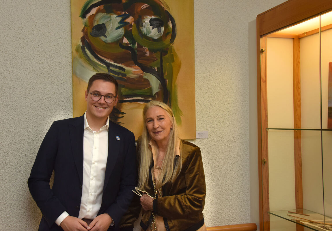 Susi Pollak, Tochter der Künstlerin Ulla Schwaiger, war bei der Vernissage mit dabei. Bürgermeister Eric Sindek würdigte die vor zwei Jahren verstorbene Künstlerin.