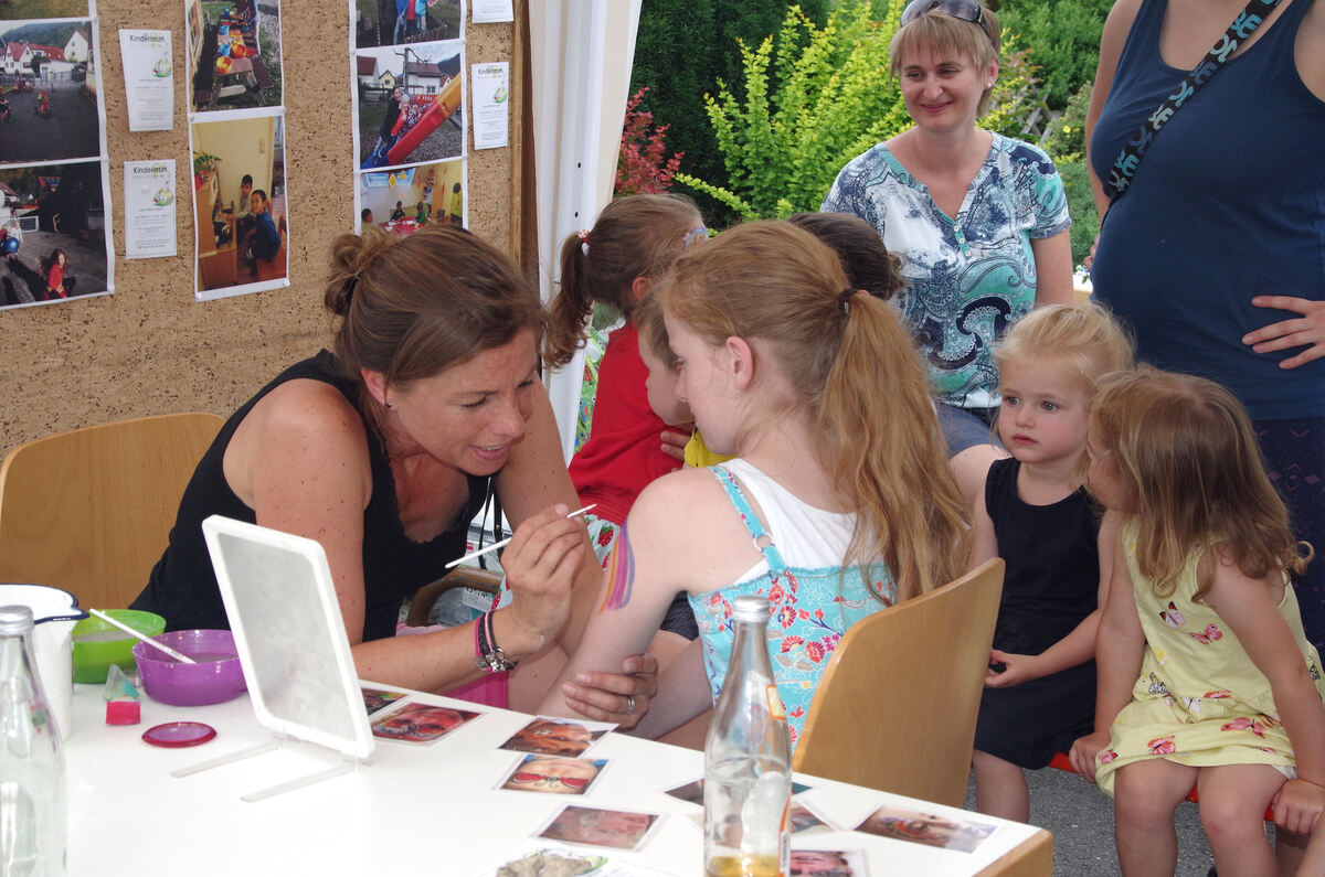 Beim Gemeindefest sorgte Lichtensteiner Blasmusik für Andrang, beim Kinder- und Jugendaktionstag tags zuvor das Kinderschminken. Einen Rundgang mit Stopp in der Schrauberwerkstatt machte Landrat Thomas Reumann zusammen mit Bürgermeister Peter Nußbaum.