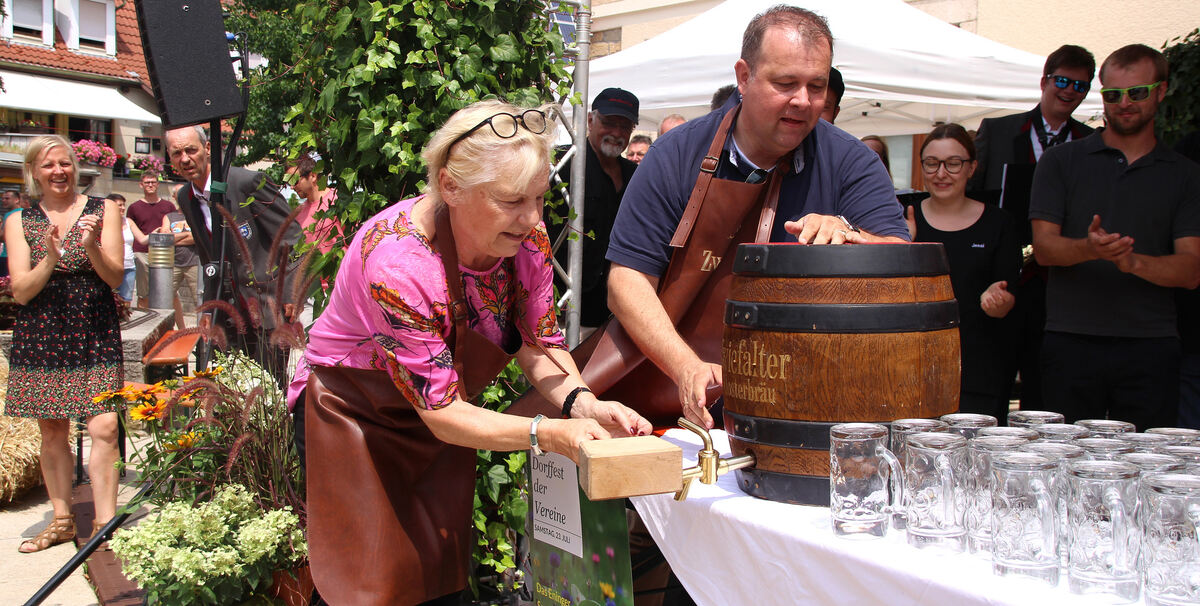 Die stellvertretende Bürgermeisterin Dr. Barbara Dürr hat ihren ersten Fassanstich absolviert. FOTOS: LEIPPERT