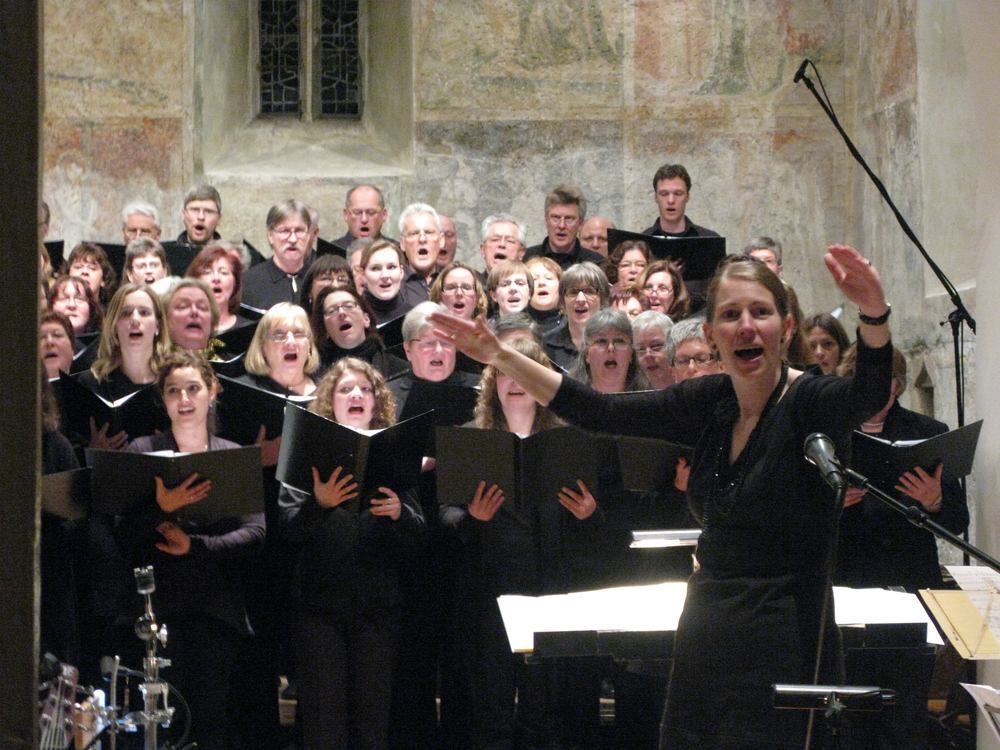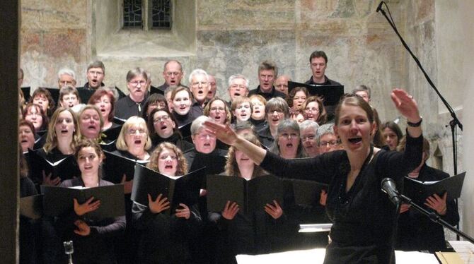 Christina Klemp und der Projektchor Unterhausen beeindruckten nach sechs Wochen Probenarbeit mit sattem Klang und ausdruckstarken Liedern. FOTO: SEITZ