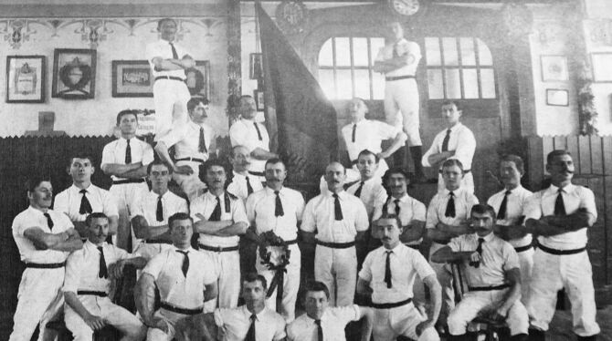 Dieses Bild der Turner des TSV Eningen wurde vor dem Ersten Weltkrieg aufgenommen, es findet sich in der Festschrift zu einem vorangegangenen Jubiläum. FOTO: LEIPPERT