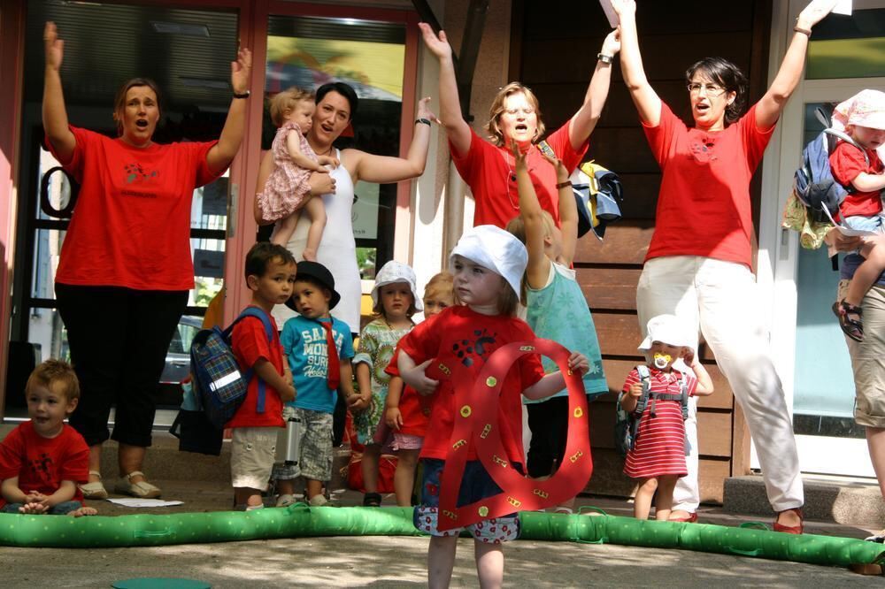 Unverzichtbarer Bestandteil der Eninger Kleinkindbetreuung: Die Glückskäfer feiern sich.