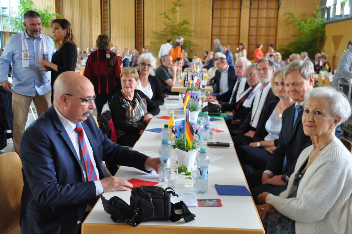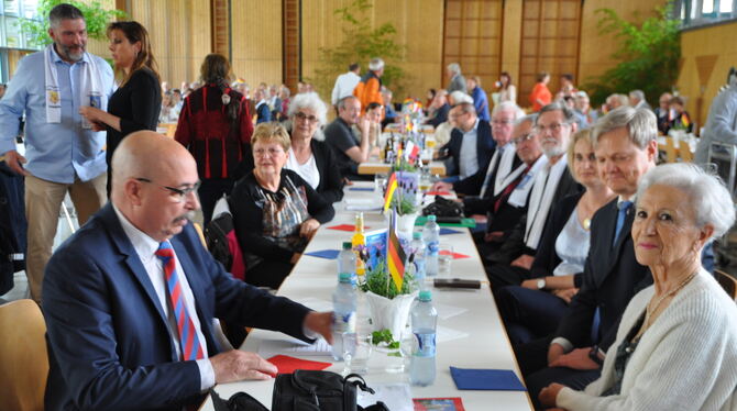 Voreppes Bürgermeister Luc Rémond (links) und Lichtensteins Bürgermeister Peter Nußbaum (Zweiter von rechts) würdigten beim Festakt die Freundschaft der beiden Gemeinden, die seit mehr als 30 Jahren besteht. FOTO: BIMEK
