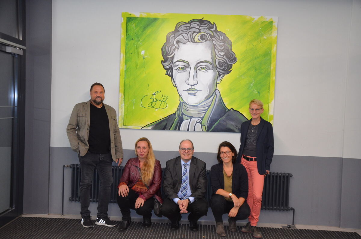 Pop-Art-Kunst im Schulbau. Bei der Übergabe dabei waren (von links) Ralf Schmied, Ute Worschischek, Michael Schrenk, Julia Menzler und Heidrun Vetter. foto: hailfinger