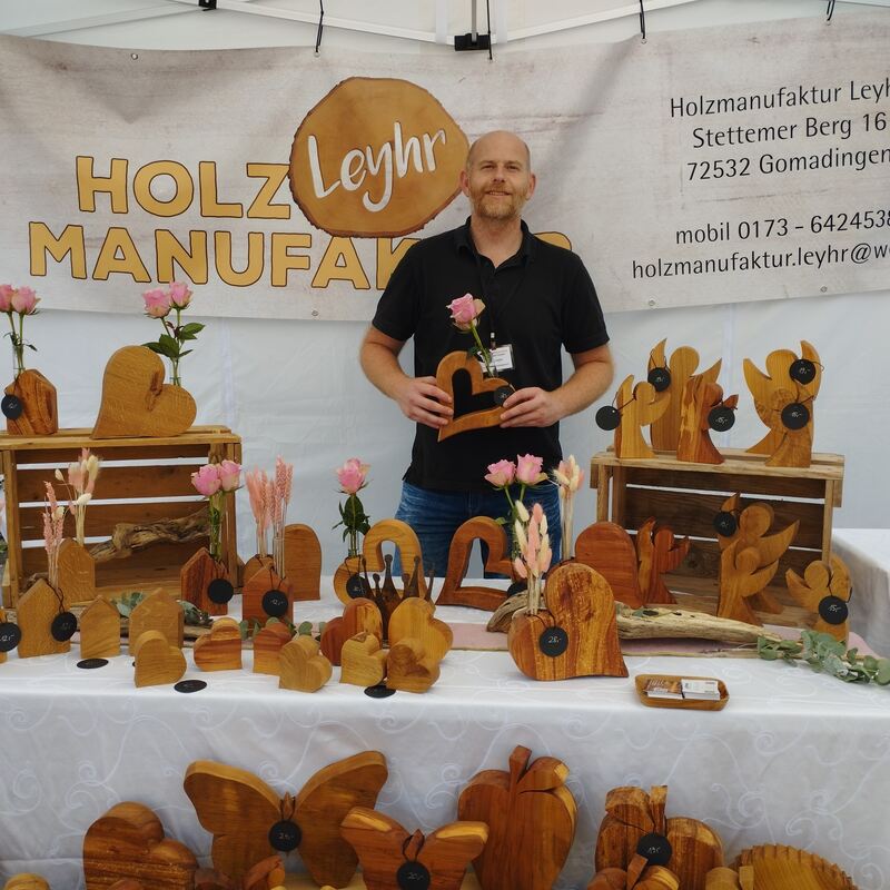 Andy Leyhr aus Gomadingen verwendet Holz aus der Region.