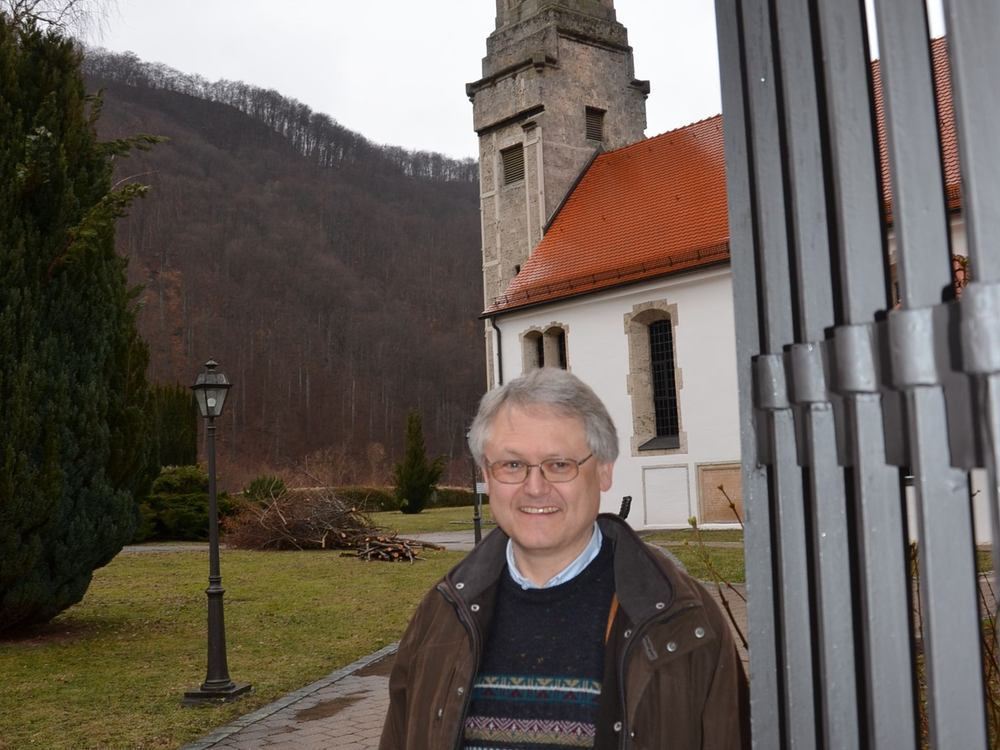 Pfarrer Michael Keller vor der Honauer Kirche.