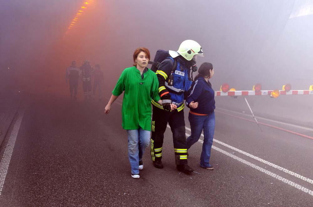 Geschafft: Feuerwehrleute bergen Unfallopfer.