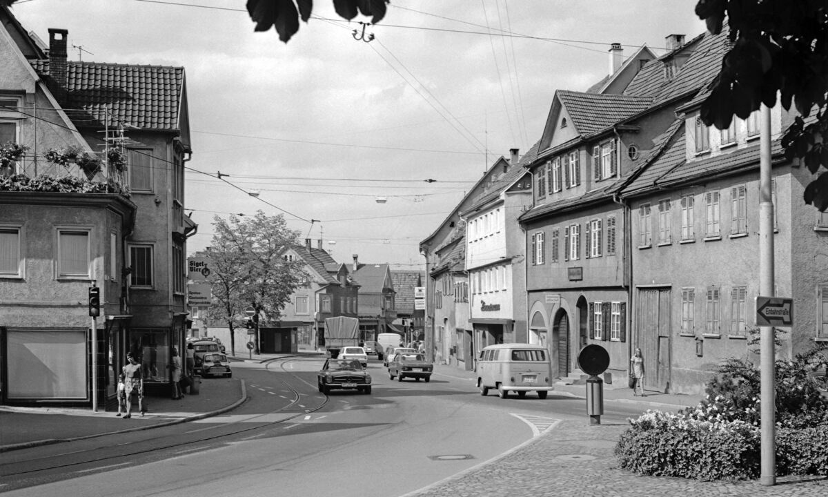 Die Häuser stehen noch. Am Pfullinger Lindenplatz hat sich seit 1971 nicht viel verändert. FOTO: BURGEMEISTER