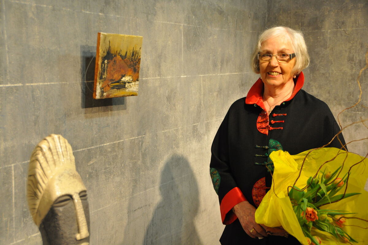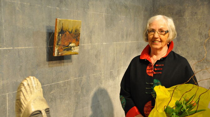 Die Künstlerin Gisela Meyer bei der Vernissage in der Klosterkirche. FOTO: MEK