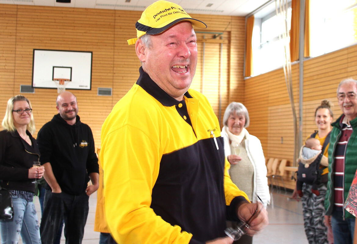 LICHTENSTEIN-HOLZELFINGEN. »Was ist denn hier los, was geht hier ab?« Die Geheimhaltung hatte offensichtlich funktioniert, Dieter Lehner hatte keine Ahnung, was ihn erwartete. Am Samstagnachmittag hatten Holzelfinger Bürger »ihren Postboten« unter einem Vorwand einfach in die Greifensteinhalle beordert mit der Bitte, doch sein Briefträger-Outfit noch einmal anzuziehen.