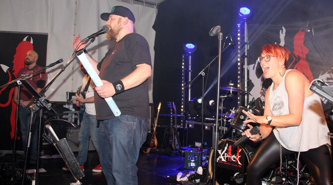 LICHTENSTEIN-HONAU. Das Rock- und Bockbierfest des TuS Honau hat einfach seinen besonderen Charakter und trifft in der Mainacht mit seiner Mischung aus Rock- und Blasmusik den Geschmack eines breit gefächerten Publikums. Gestern Abend wackelte das Zelt neben dem Sportplatz durch wummernde Bässe und satte Gitarrenriffs, dargeboten von drei erstklassigen Rockbands.