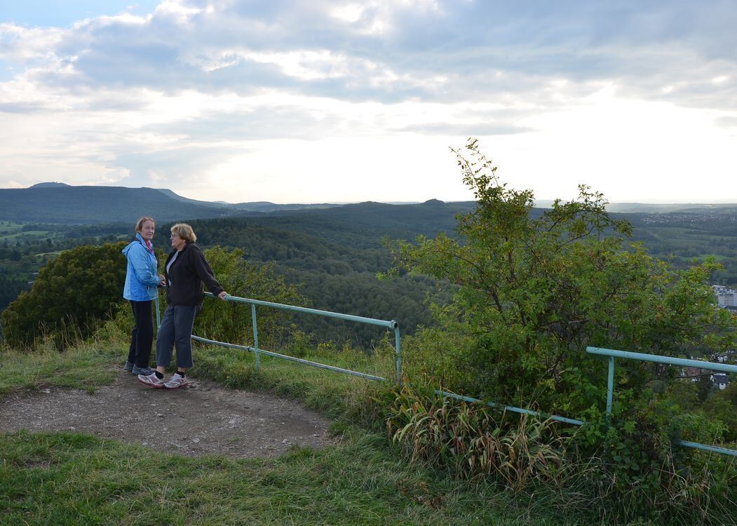 Von dieser Aussicht bekommen sie nicht genug: Ruth Wurster und Erneliese Brommer auf dem Georgenberg-Gipfel. GEA-FOTO: SCHÖBEL