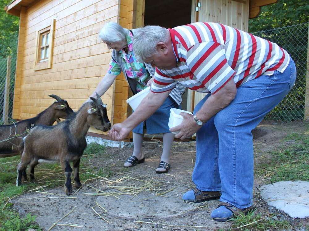Im Altenpflegeheim Burghalde haben die beiden Zwergziegen aus Pfullingen ein neues Zuhause gefunden. Hier sollen sie demenzkranken Menschen Freude machen und beim Erinnern helfen. FOTO: PR