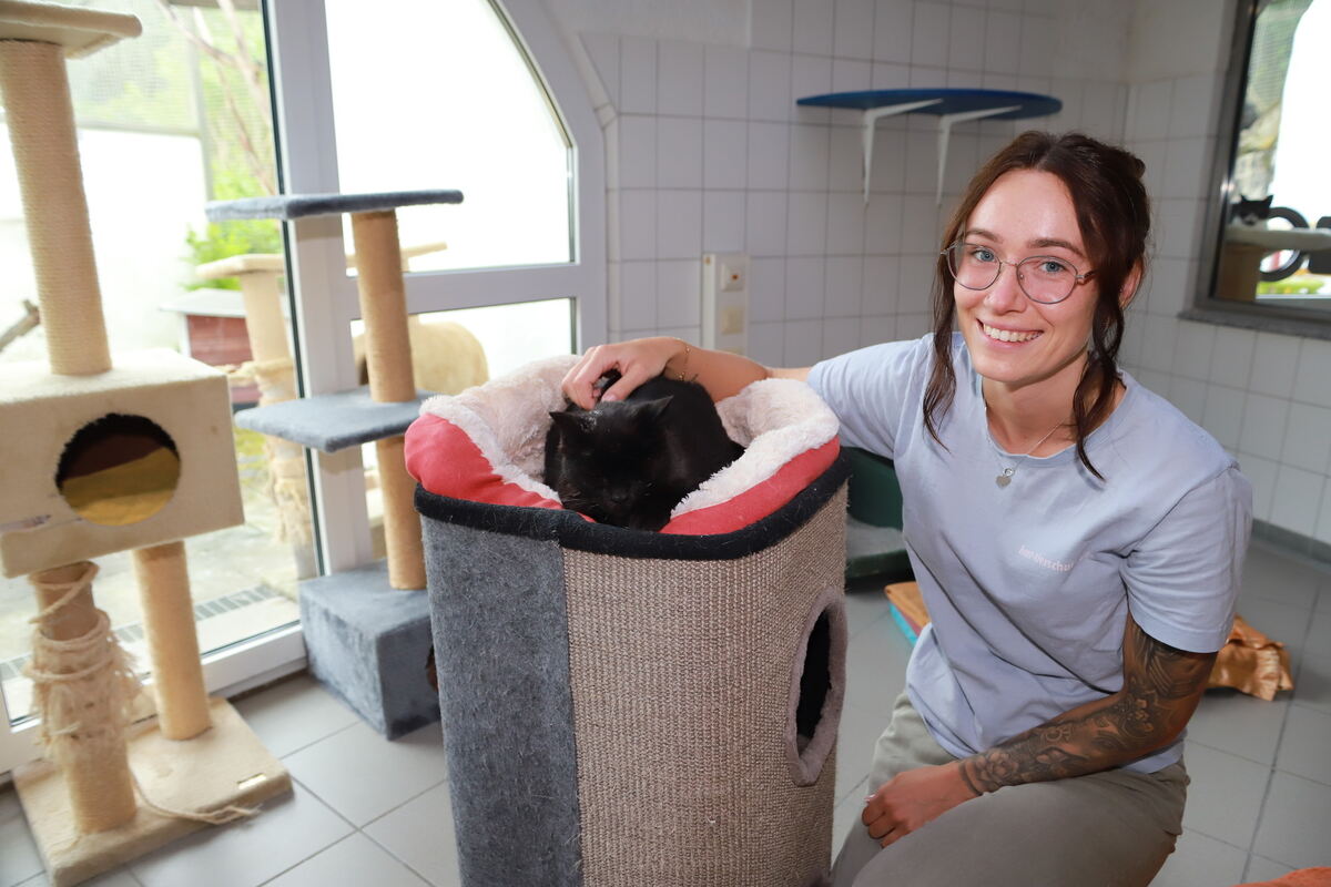 Tierhelferin Jasmin Riekert kümmert sich um Seniorenkatzen wie Polly. Dabei braucht sie Unterstützung.