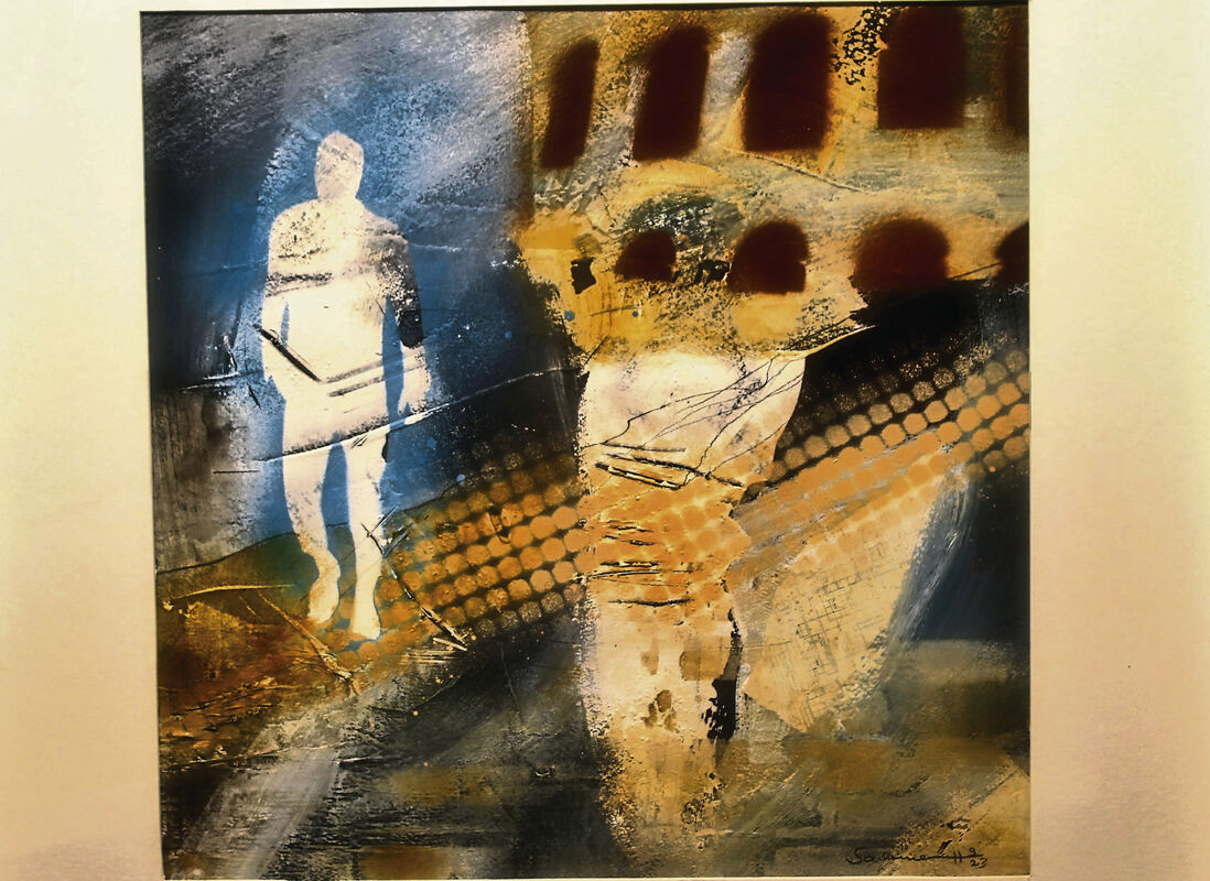 Dramatisch wird es bei Sabine Heid. In ihrer Collage bewegt sich eine schattenhafte menschliche Figur durch eine Szenerie, die mit ihren Fensterreihen an das Kolosseum in Rom erinnert, doch albtraumhaft keine Orientierung bietet. »Lost Places« nennt sie ihr Bild. Ganz ähnlich empfand Roswitha Maria Konrad in ihrer Fotografie »entblößt«. Sie zeigt ein altes Gebäude mit marodem Charme, von allen verlassen, in Auflösung begriffen.
