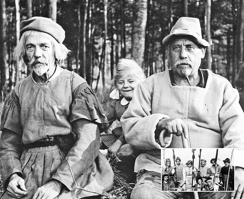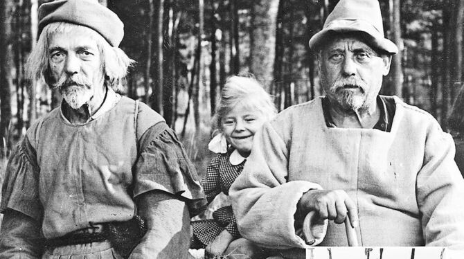 So sahen die Eninger noch in den Sechziger-Jahren aus, allerdings nur als Filmkomparsen (von links): Johannes Groß, Christel Armbruster und Julius Hahn im Februarblatt des Alt-Eningen-Kalenders. GEA-REPRO