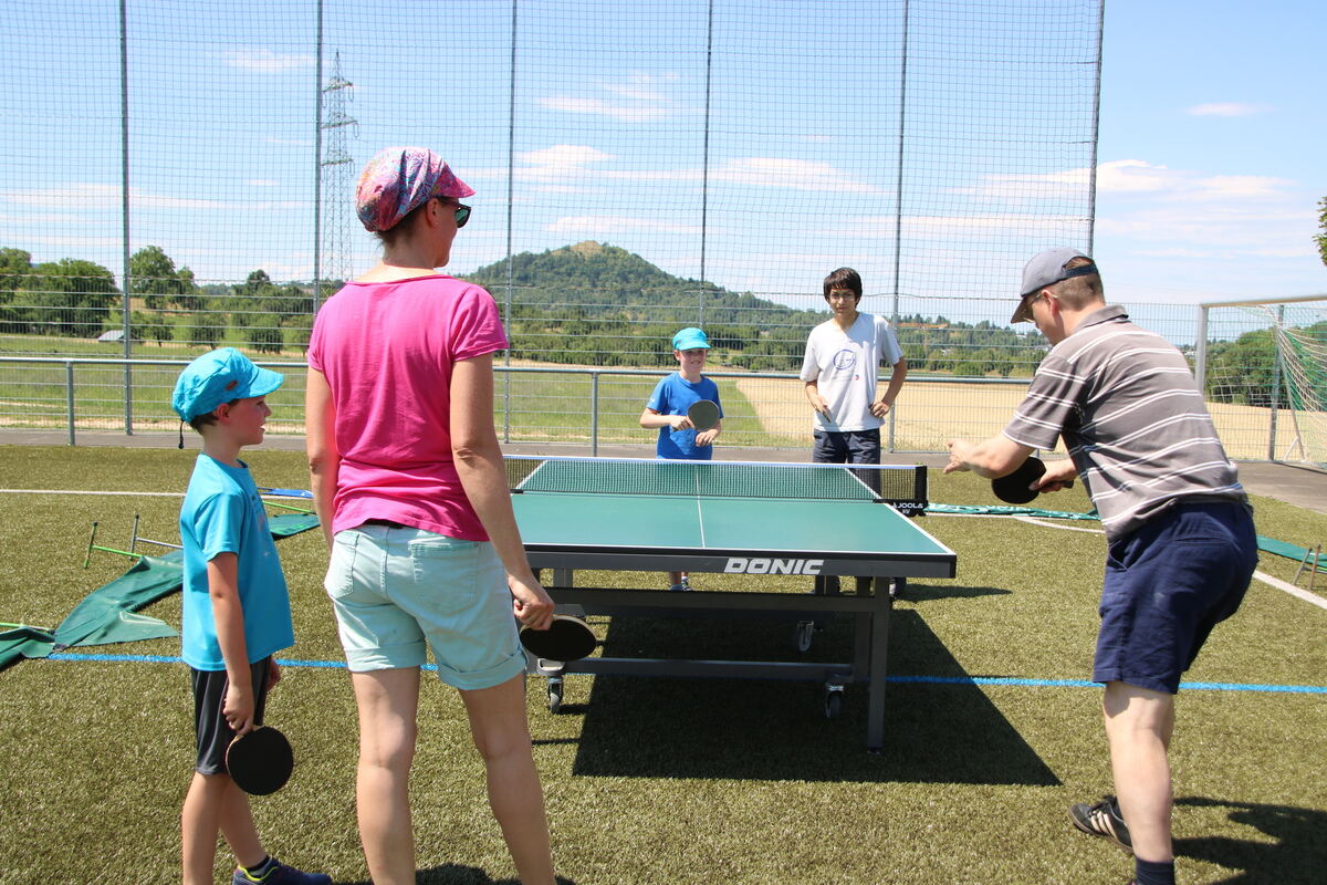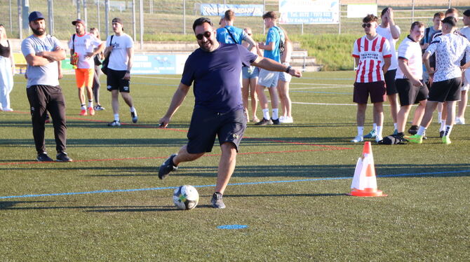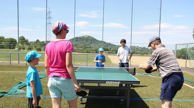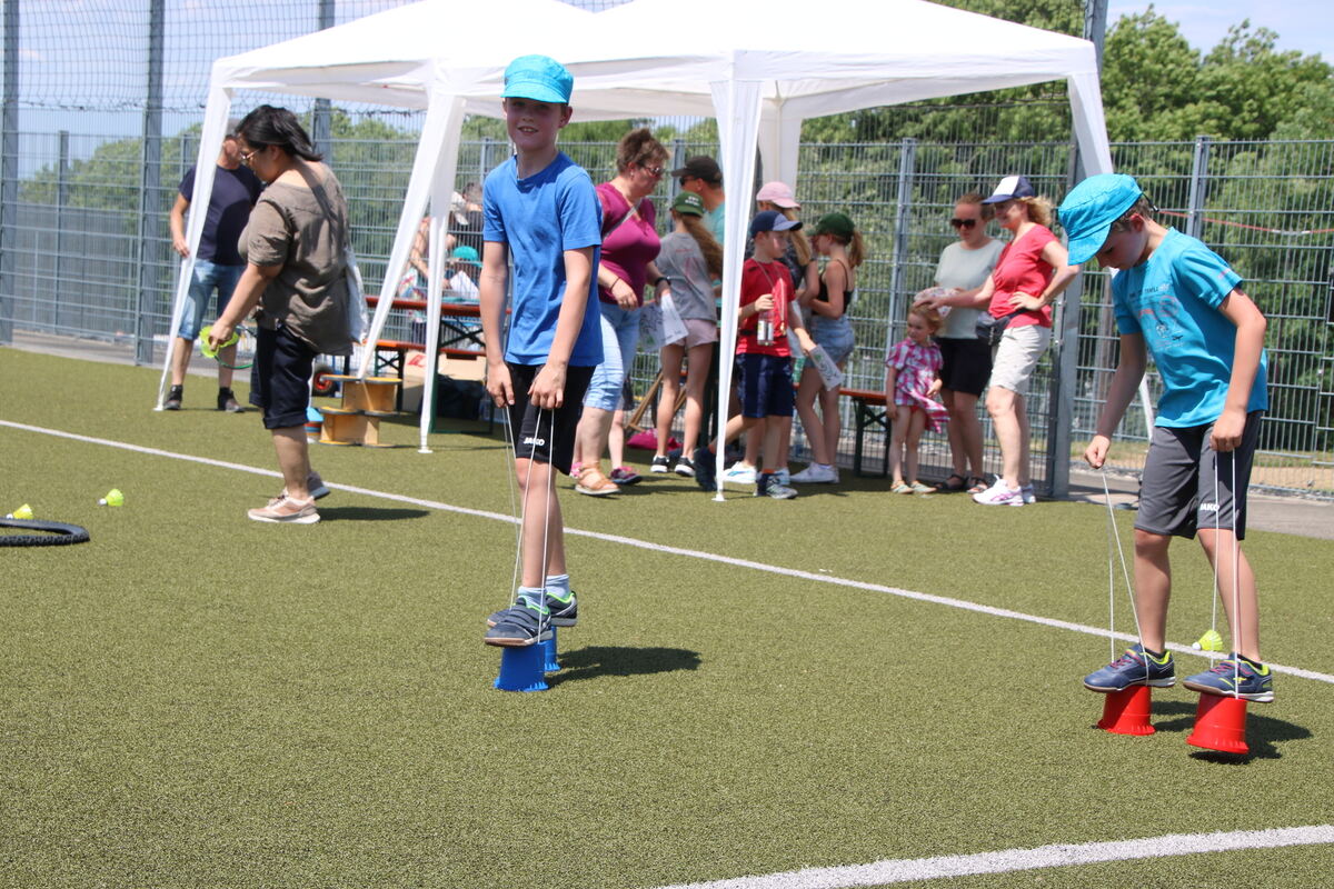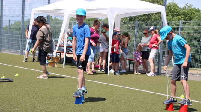 Aktiv konnten sich Mitglieder und Gäste am Jubiläum des TSV Eningen beteiligen: beim Elfmeter-Turnier (links) oder beim Jubi-Parcous mit sieben Stationen der TSV-Abteilungen.