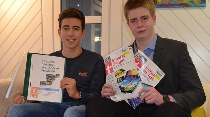 Nick Slotnarin (links) und Moritz Böbel machen beim Wettbewerb »Jugend testet« der Stiftung Warentest mit und haben dafür das Angebot der vier größten Video-on-Demand-Dienste untersucht.