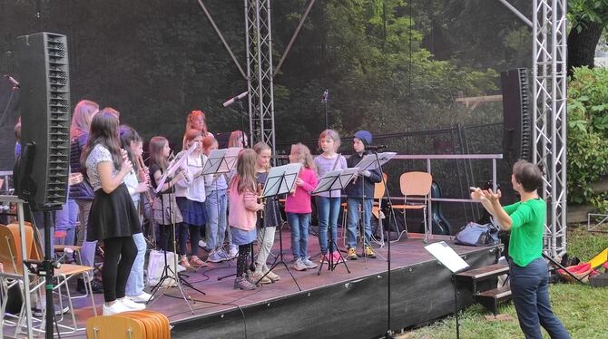 ENINGEN. Der Start des Eninger Kultursommers war nicht vom Wetter begünstigt. Doch klein beigeben war für die Gemeinde als Veranstalter keine Option. Die Musikschul-Ensembles hatten so viel Herzblut und Mühe in die Vorbereitungen gesteckt, das klar war, dass diese mit einer Aufführung und Applaus belohnt werden müssen. Das dem schlechten Wetter trotzende Publikum wurde nicht enttäuscht. Zwar musste es hartnäckig dem Nass von oben die Stirn bieten, wurde aber mit tollen Beiträgen der jungen Musiker und Musikerinnen, geleitet von Daniela Endmann, Sigune Lauffer und Brunhilde Donat, belohnt.