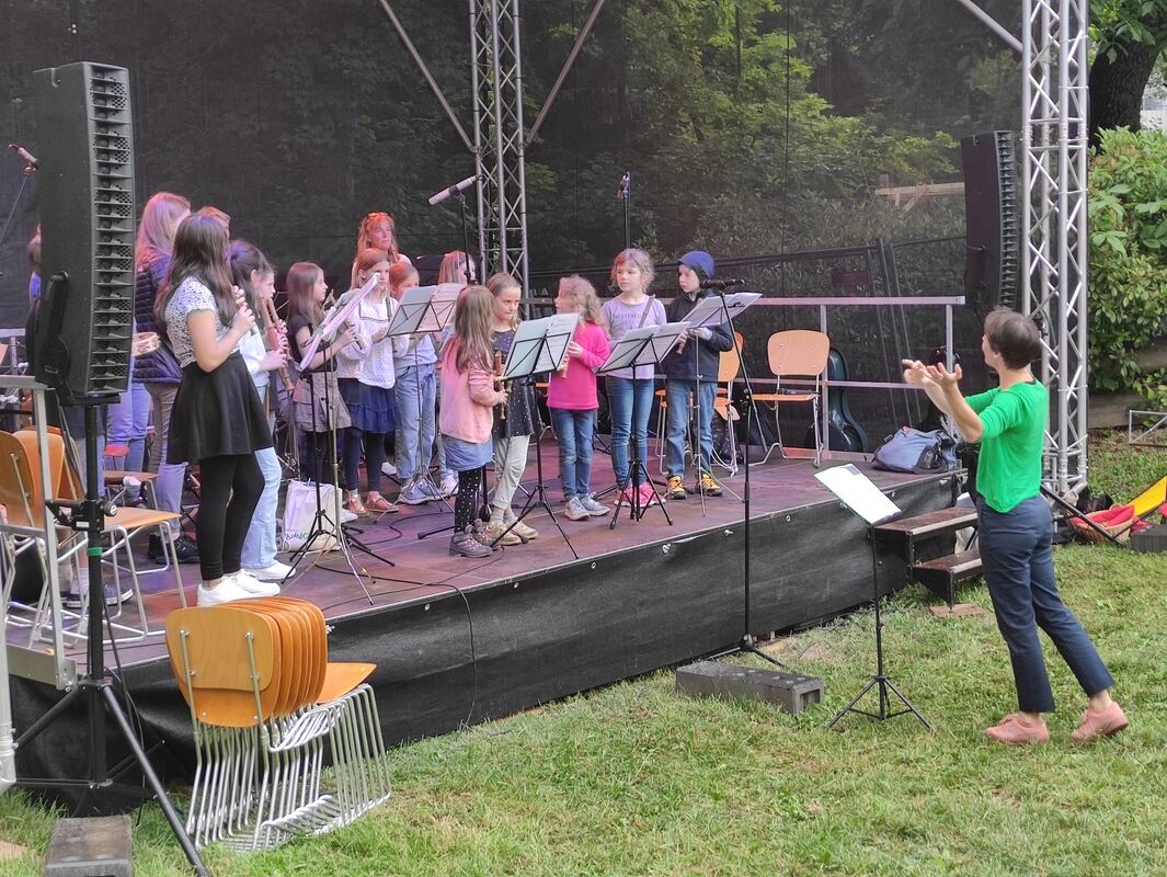 Streicher, Flötenspieler und Pianisten unterhielten mit Klassikern und unbekannteren Werken. Es wurde ohne Pause durchgespielt und so wechselten sich MusikanCelli, das Blockflöten Ensemble Plus, die Recorderkids, das Erwachsenen-Ensemble sowie kleine und große Pianisten ab. Zum Abschluss war das Publikum gefragt. Gemeinsam sangen alle die irische Volksweise »Mögen die Straßen …«, was in tosendem Applaus endete.