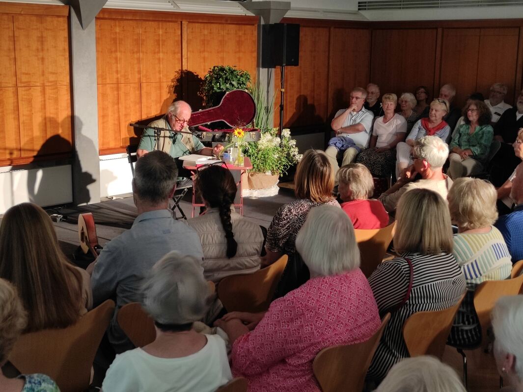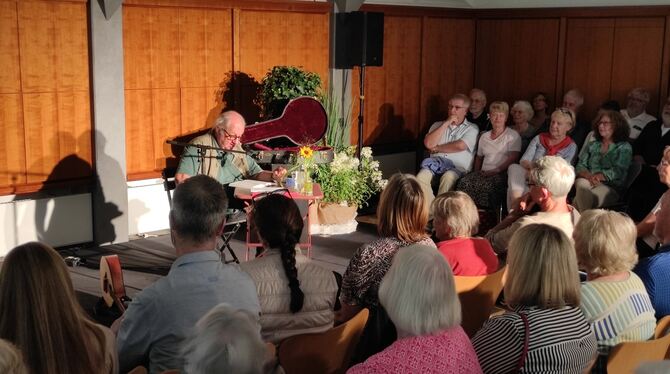 Prominenter Besuch aus Stuttgart kam am Abend in den Rathaussaal: Gleich zu Beginn verkündete Sternekoch Vincent Klink, wie gern er nach Eningen komme und welch’ großer Fan er vom wohl berühmtesten Bürger Eningens, HAP Grieshaber, sei. Klink nahm sein Publikum mit auf eine Reise in die Kunstszene Venedigs, ins Burgund und in seine Kindheit nach Schwäbisch Gmünd. Kurzweilig las der sympathische Autor aus seinen Büchern und schweifte – zum Wohlgefallen der Zuhörer – ab, um Anekdoten aus dem eigenen Leben einzubinden. Klink servierte ein Menü aus Lebensfreude, packenden Geschichten und unglaublichem Wissen über Kunst. (eg)