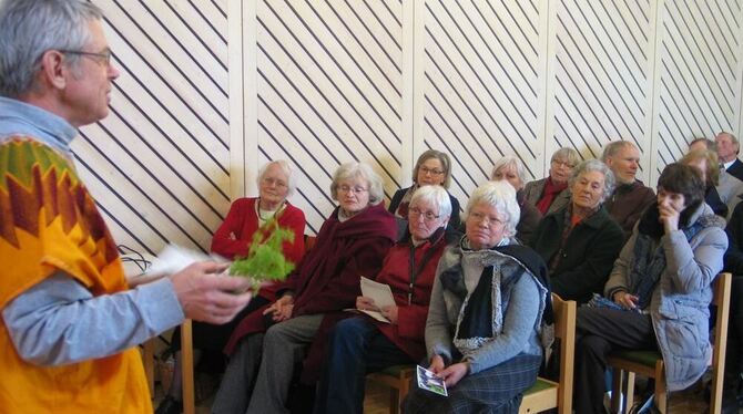 Apotheker Hans-Martin Hirt berichtet in Pfullingen über seine alternativen Heilmethoden und über Selbsthilfe-Projekte in Afrika. FOTO: SEITZ