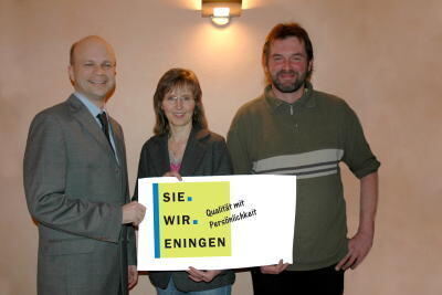 Aufbruchstimmung beim Handels- und Gewerbeverein: Der neue Marketingbeauftragte Volker Feyerabend, die Vorsitzende Elke Ney und ihr Stellvertreter Thomas Büttner präsentieren das neue Logo des Vereins (von links).