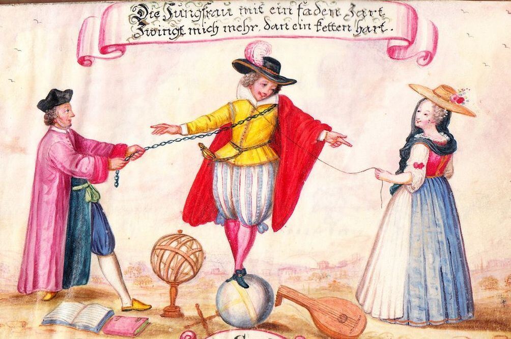Aus dem Stammbuch des Wundarztes: »Die Jungfrau mit ein Faden zart, zwingt mich mehr dann ein Ketten hart«. GEA-REPRO: STADTARCHIV