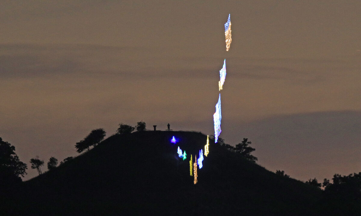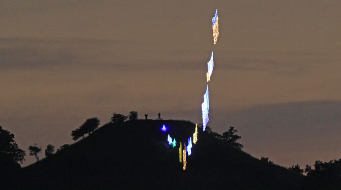 PFULLINGEN. Es ist wieder so weit: Weitgehend wolkenfreie Nächte bei angenehmen Temperaturen verleiten Freunde der LED-Technik dazu, im Freien kreativ zu werden und weithin sichtbare Licht-Schauspiele zu veranstalten. So hing etwa in der Nacht zum Freitag wieder einmal eine bunt leuchtende »Wäscheleine« über Pfullingen. Bewundert werden konnte sie aber auch von manchen Reutlinger Stadtgebieten und von Eningen aus. Aufgehängt wurde sie ganz offensichtlich vom Georgenberg aus. Immer wieder tauchen solche Himmelsleitern am Nachthimmel auf und halten sich dort bisweilen stundenlang. Bleibt zu hoffen, dass diese Installation angemeldet war und für den Flugverkehr keine Gefahren barg. (ps)