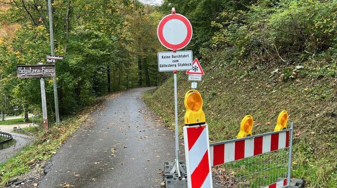 Kein großes Hindernis: Die Absperrung der Göllesbergsteige beim Schützenhaus. Immer wieder räumen Verkehrsteilnehmer die Abschrankung beiseite. FOTO: SAUTTER