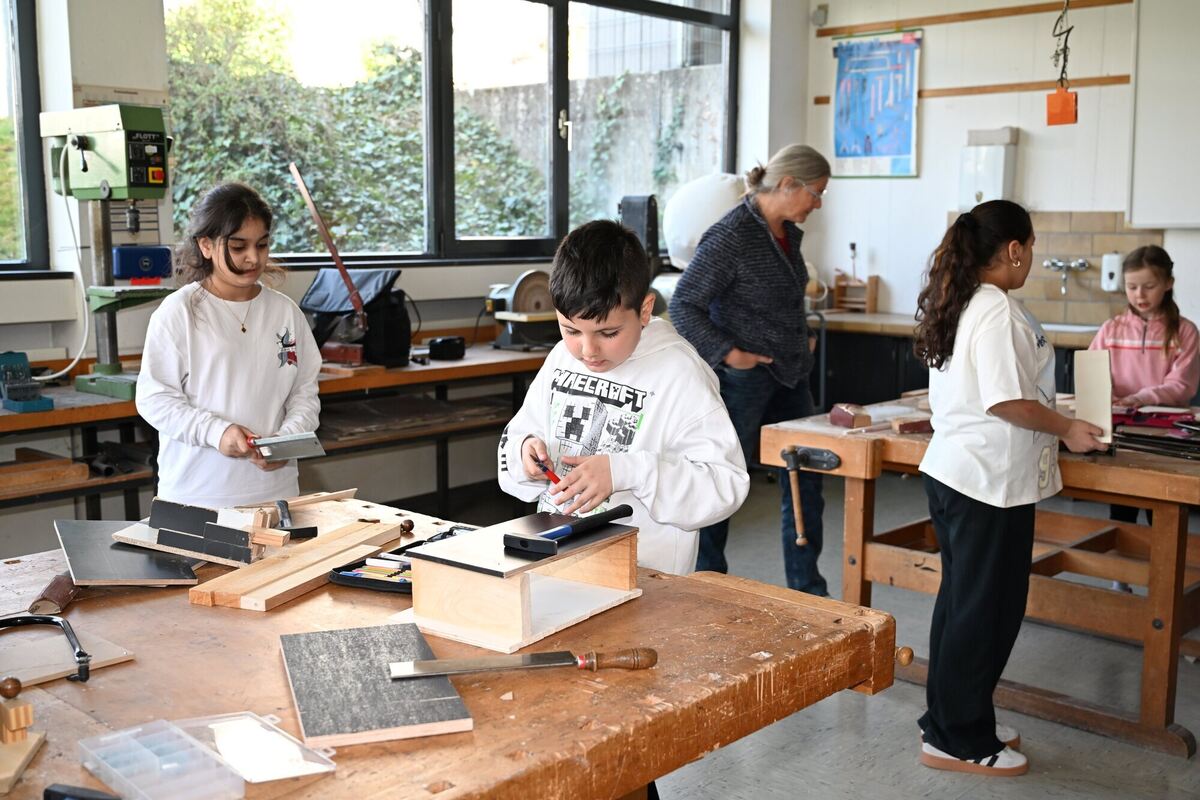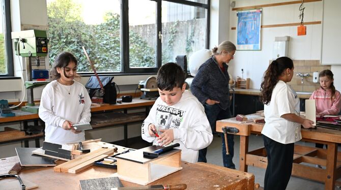 Mädchen und Jungs werkeln gemeinsam an der Lichtensteiner Grundschule. Das und weitere Angebote macht ein Programm für mehr Bildungsgerechtigkeit möglich. Schulleiterin Angelika Brenner freut sich über die Unterstützung.
