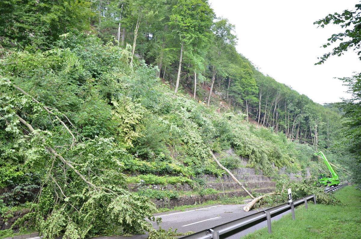 Aufwendig: Die Verkehrssicherung, wie 2017 an der Holzelfinger Steige, trägt zum großen Defizit im Lichtensteiner Waldkultur- und Nutzungsplan bei.
