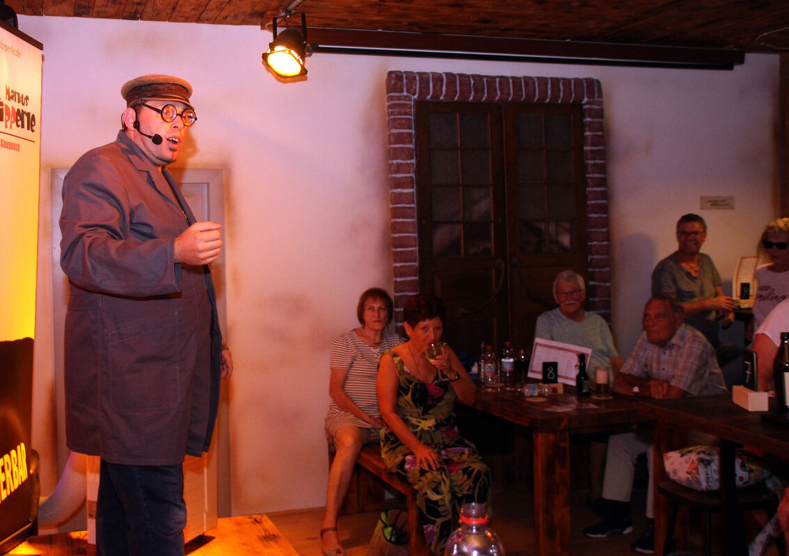 Am Samstag startete die »Pfullinger Festfabrik« in ihren neuen Räumen ihr Jahresprogramm mit einem schwäbischen Comedy-Kult-Abend mit Markus Zipperle. Der nach eigenen Angaben »mit verbaler Inkontinenz« ausgestattete Mundartkünstler, Schauspieler und Regisseur an der Theaterscheuer Ebersbach, neuerdings auch Stimmgeber für die Fernseh-Kultfiguren »Äffle und Pferdle«, begeisterte die Zuschauer fast zwei Stunden lang mit brachialem urschwäbischem Wortwitz, manch prekären Witzen und viel Humor. (lpt)