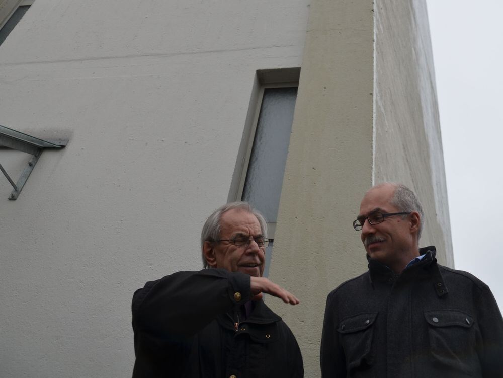 Dekan Robert Widmann (links) und Kirchengemeinderat Martin Brauße vor der Liebfrauenkirche. GEA-FOTO: SAUTTER