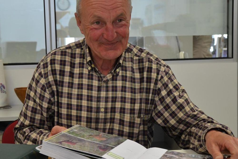 Horst Rehm mit zweien seiner Fotoalben. FOTO: BARAL