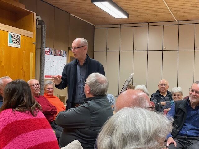 ENINGEN. Beim unterhaltsamen und humorvollen Abend der Mundartgruppe des Albvereins Eningen und des Vereins schwäbische mund.art war der Raum im Spital voll besetzt. Der erste Versuch einer »Bruddelei« mit Roman Mangold gelang gleich bestens. Jeder Tisch bekam einen Spruch vorgegeben, der im Sprechrhythmus eingeübt wurde. Zum Beispiel wurden die Wendungen »ob des ebbes wird« oder »ja woiß mr des« wie ein Kanon an fünf Tischen gleichzeitig mit verschiedenen Sprüchen geschwätzt und gebruddelt. Die Stimmung der Gäste war sofort gelockert.