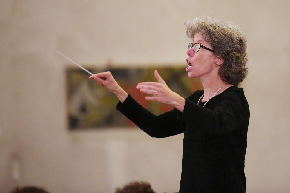 Pfullingens Kantorin Dorothee Berron bei der Arbeit: Hier dirigiert sie die Aufführung des Oratoriums »Elias« in der Riedlinger Stadtpfarrkirche St. Georg. FOTO: WARNACK