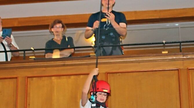 Nach dem Gottesdienst in der Martinskirche nahmen viele gern das Angebot des CVJM an und stärkten sich am Grill- und Getränkestand. Das Wetter war passend und lud ein zum Treffen, ins Gespräch kommen und genießen. Denn Fingerfood gehörte an diesem Abend zur Gastfreundlichkeit der Kirchen dazu. Sehr gut angenommen wurden die Kirchenführungen: die persönliche Wahrnehmung des Kirchenraums von der Kanzel aus, die Segnung im Chorraum und das spektakuläre Abseilen von der Orgelempore in der Martinskirche. »Der Sinn ist, Vertrauen zu wagen«, sagte Initiator Alexander Katz.