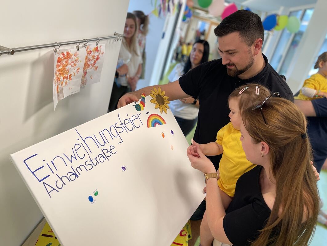 Eltern und Kinder feierten die Eröffnung der Denk-mit-Kita an der Achalmstraße.