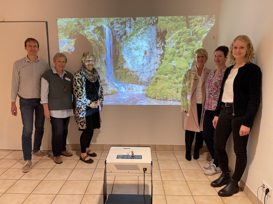 Im Prinzip handelt es sich bei dem Gerät um einen schwenkbaren Projektor über den via Themensticks verschiedene Bild- oder Filmmotive inklusive musikalischer Untermalung abgespielt werden können. Vom Sternenhimmel über Seifenblasen, Aquarium, Naturspaziergang bis hin zum André-Rieu-Konzert gebe es ganz verschiedene Themenbereiche, erklärte Sabine Rist, die das Gerät vorführte und die vor allem von der einfachen Bedienung überzeugt ist: »In zwei Minuten ist es einsatzbereit.«