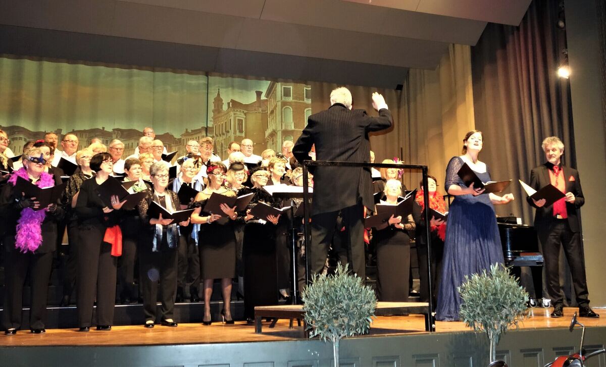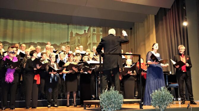 Gemeinsam mit den Solisten Susanne Meyer und Hubert Mayer (rechts) sang der Gemischte Chor ein Potpourri aus der Operette »Eine Nacht in Venedig«. FOTO: BÖHM